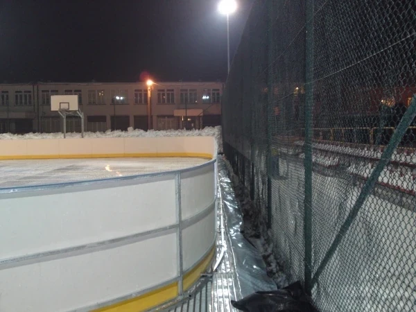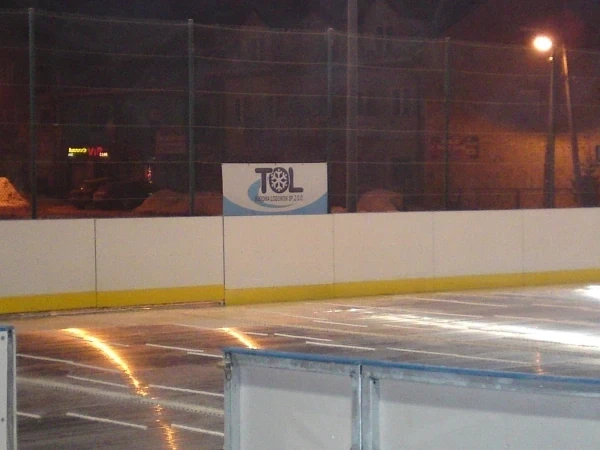 Lodowisko sezonowe w Obornikach przy ul. Obrzyckiej 88 wykonane w technologii paneli aluminiowych o powierzchni 800m² (20x40m)
