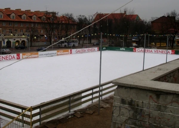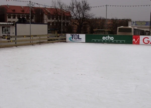 Lodowisko sezonowe wykonane w technologii paneli aluminiowych o powierzchni 578m² (17x34m)